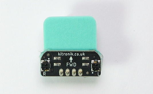 The light is an Infrared (IR) light. This is a light that can’t be seen by humans, but can be detected by an IR sensor. The light will reflect off a white surface, but with darker surfaces, less light is reflected. A totally black surface will not reflect any light. The IR detector will detect this difference in reflected light.